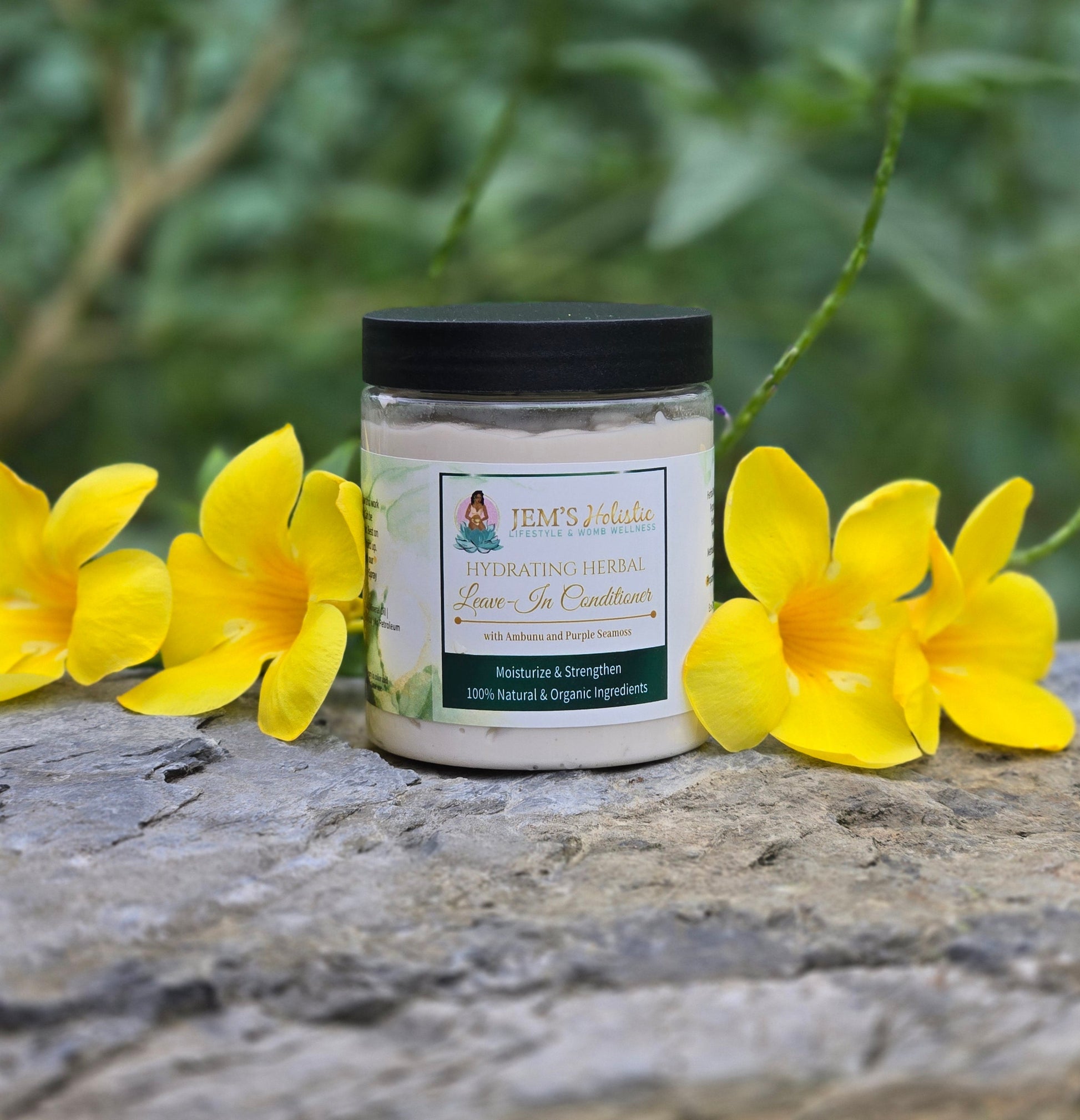 Our Hydrating Herbal Leave-in Conditioner will not only moisturize the hair but also strengthen the hair follicles and prevent breakage. The addition of Purple Sea Moss and Ambunu will add slip and increase moisture retention. Ambunu is a natural African plant that instantly detangles the hair and leaves it super soft, shiny and moisturized. Thus, it is also used as a natural conditioner. It makes the hair stronger and thicker as well as prevents dry scalp and lessens hair loss.